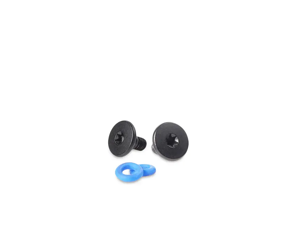 Zwei mattschwarze Halterschrauben mit passenden O-Ringen ("Soft") zur Montage des Lupine Lampenkopfes am FrontClick Halter, Lenkerhalter oder Schnellspanner. Für die Montage wird ein Sechsrundschlüssel TX15 benötigt.