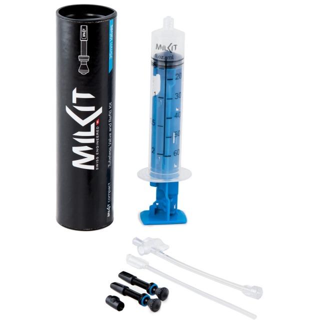 Das revolutionäre milKit Ventilsystem ermöglicht eine einfache und saubere Tubeless-Installation und -Wartung. Dank dem Zusammenspiel aus milKit Ventilen und dem Spritzensystem wird ein schnelles und einfaches Messen und Nachfüllen von Dichtmilch möglich - ohne die Luft aus dem Reifen zu lassen.